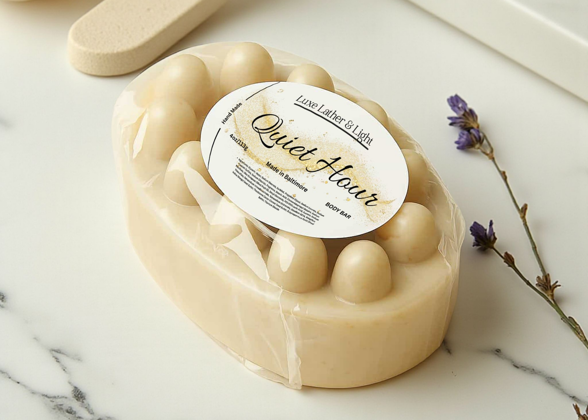 Stillness in every lather. Quiet Hour is a creamy bar—clean, calming, and quietly luxurious. With soft notes of musk, warm woods, and subtle serenity, this soap turns your daily cleanse into a sacred pause. It’s the scent of candlelit silence, deep exhales, and skin that feels at peace.